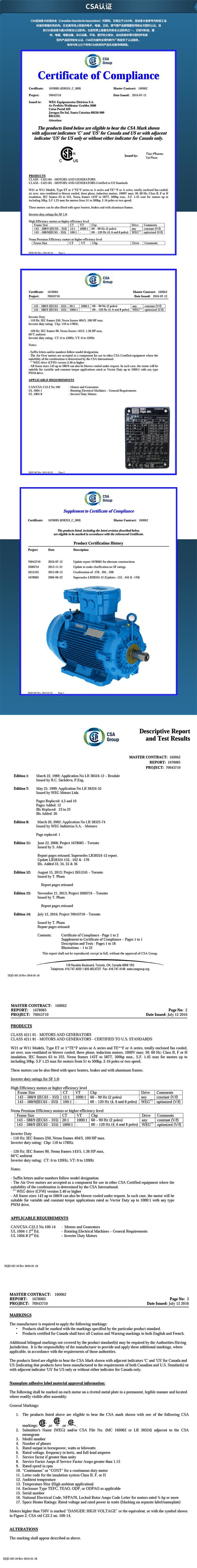 WEG電機(jī)生產(chǎn)的節(jié)能電機(jī)符合加拿大CSA認(rèn)證標(biāo)準(zhǔn),WEG生產(chǎn)的電機(jī)具有著低噪音、低震動、效率高、兼容WEG變頻器等特點(diǎn),我們銷售的電機(jī)在加拿大也享受WEG質(zhì)保18月的服務(wù)。